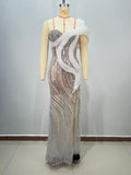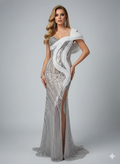 Visual Highlights: The asymmetrical one - shoulder design is matched with three - dimensional ruffled mesh decorations, breaking the monotony of the conventional style. The gown is covered with silver - white gradient sequins/beads, which reflect a brilliant starlight under the light, as if wearing the Milky Way. The high - slit skirt combined with the slim - fitting cut shows the leg lines when walking, which not only shows the body advantages but also adds a flexible aura.