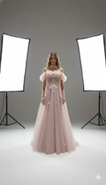 Two delicate blush gowns, as if imbued with romance gathered from a secret garden. Each handcrafted floral appliqué and shimmering sequin whispers a tender tale. With their voluminous skirts that float on the breeze, these dresses transform you into a vision of a walking spring garden, radiating an ethereal and enchanting aura