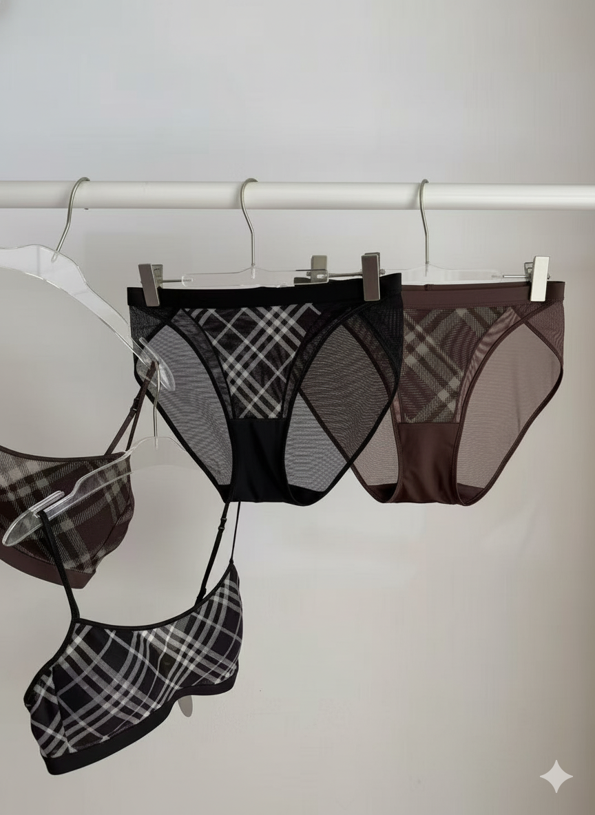 this minimalist gingham lingerie set is made from comfortable fabric with clean cuts, ensuring a feel of understated style.