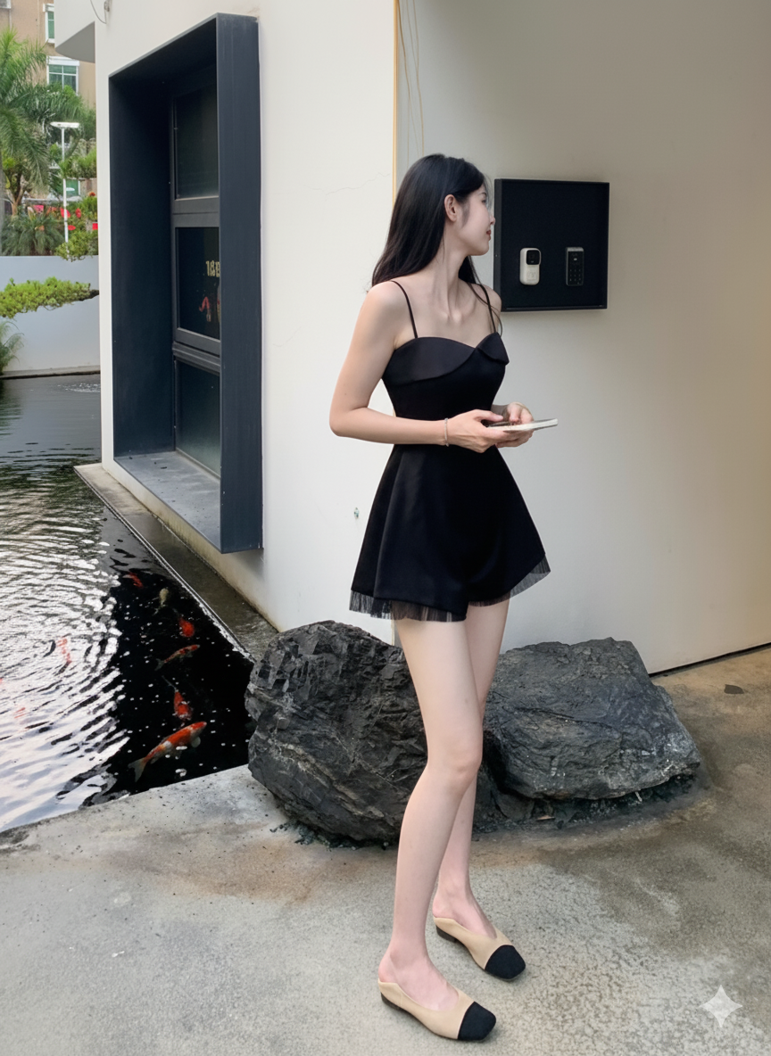Discover the perfect blend of sophistication and ease. This black jumpsuit combines a flattering slim-fit bodice with a graceful A-line skirt, finished with dynamic fringe details. Ideal for dates, daily outings, or semi-formal events, it offers both comfort and timeless style