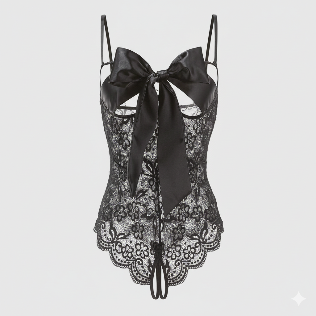 Delicate lace, statement bow. A perfect blend of seduction and charm