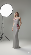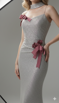 This evening gown features a silver-gray sequined fabric that captures the light like a starry night sky, creating a dazzling shimmer with every movement to ensure you become the center of attention.